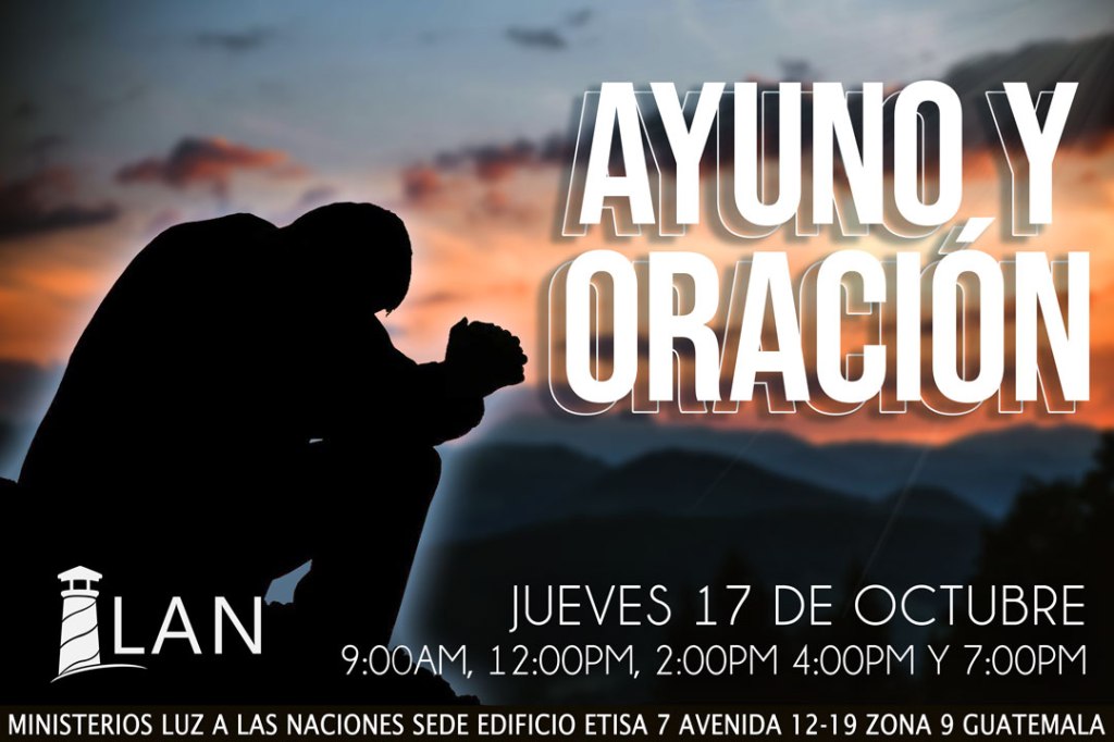 Este jueves 17 de invitamos a nuestra sede LAN para que asistas a nuestros 5 tiempos de ayuno en los que oraremos intercederemos y recibiremos palabra de Dios.