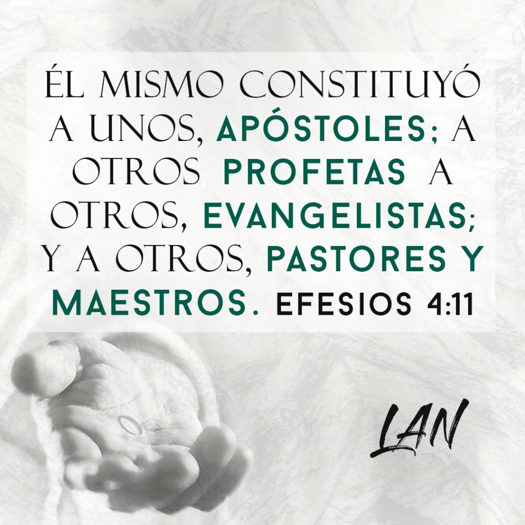 11 Él mismo constituyó a unos, apóstoles; a otros, profetas; a otros, evangelistas; y a otros, pastores y maestros, 12 a fin de capacitar al pueblo de Dios para la obra de servicio, para edificar el cuerpo de Cristo. 13 De este modo, todos llegaremos a la unidad de la fe y del conocimiento del Hijo de Dios, a una humanidad perfecta que se conforme a la plena estatura de Cristo.